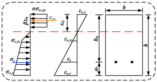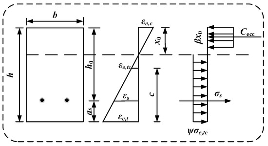 Substituting Equations (6) and (7) into Equation (8) yields the equivalent stress parameter α and the equivalent height parameter β for the compression zone.