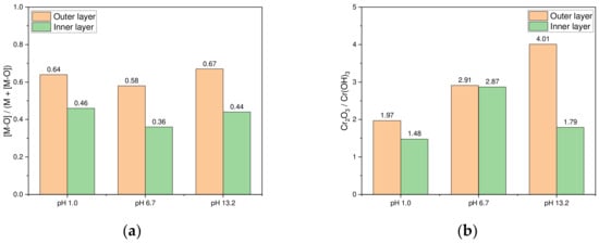 - Haupt, S.; Strehblow, H.H. A combined surface analytical and electrochemical study of the formation of passive layers on Fe/Cr alloys in 0.5 M H2SO4. Corros. Sci. 1995, 37, 43–54. [Google Scholar] [CrossRef]