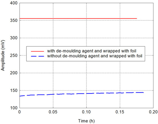 Comparison of recorded amplitude values with/without de-moulding agent and wrapped with foil.