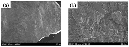 Titanium alloys are important structural materials, while nickel-based alloys are considered superalloys. Due to their high thermal expansion coefficients, cracks are prone to develop during deposition. In the WAAM process, no cracks were observed in the deposited layers at deposition currents below 50 A. However, at a deposition current of 50 A, cracks were detected in the deposited layer. Figure 9 illustrates the macroscopic view of the partial cracks, as well as high-rate SEM images. No cracks were found in the first layer, but the crack section in the second layer Ti6Al4V/Inconel 718 appeared disconnected, with an uneven crack morphology. High-magnification SEM images (shown in Figure 9b–d) of the crack section reveal a microfracture morphology characterized by river and cleavage patterns, indicating a cleavage fracture mechanism.