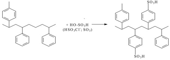 A strongly acidic cation exchanger with -SO3H groups is obtained by grafting them onto the benzene ring in the styrene–divinylbenzene copolymer structure at 90–140 °C, being graphical represented in Figure 2 [61].
