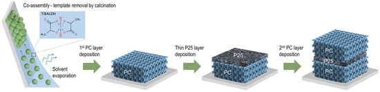 Schematic illustration of the PC/P25/PC trilayer deposition process.