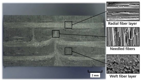 Microscopic morphology of the cross-section of 2.5D Cf/SiCs [51].