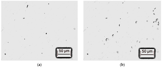 Figure 1. Microscopic photograph of impurity particles in transformer oil after pretreatment. (a) Impurity particle morphology 1. (b) Impurity particle morphology 2.
