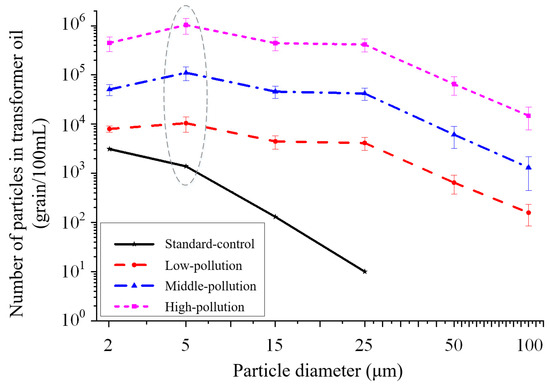 Figure 3. Distribution of particle numbers in transformer oil samples.