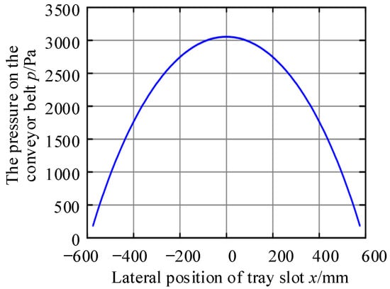 According to the test situation, the air cushion pressure value and pressure distribution of the section carrying the material and the conveyor belt at the same time in the transverse direction can be calculated by Equation (8). The parameter values involved in the equation are shown in Table 4.