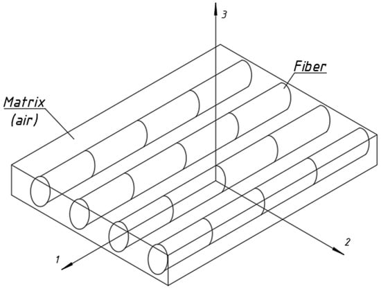 After the homogenisation of the fabric, it was assumed that the fibres were contained within the matrix as defined by the Hashin model, with the material properties given in Table 9. However, it should be pointed out that in this analysis, the matrix was modelled as air (Figure 13).