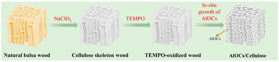 To overcome issues such as poor stability, challenging recovery processes, and aggregation tendencies, we have developed an efficient and recyclable adsorbent tailored for dye wastewater treatment. By employing a solvent thermal method, AlOCs were in -situ grown on balsa wood, thereby enhancing mass transfer, specific surface area, and recoverability (as illustrated in Scheme 1). The structure of the adsorbents is characterized using various techniques, and their dye adsorption performance is investigated in this research.