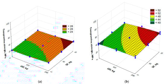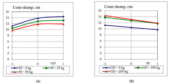 - A significant effect of the interaction of factors is observed and it is obvious that achieving a high concrete strength is possible with the appropriate optimization of the composition of the mixture.