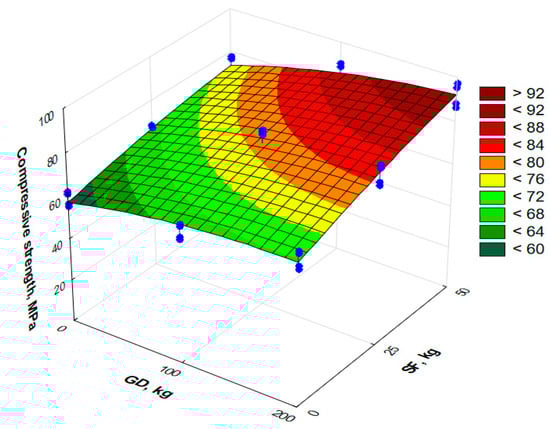 - The 28-day compressive strength of 73.5 MPa, 85.6 MPa and 92.0 MPa was obtained at a content of 50 kg/m3 of silica fume and 0 kg/m3, 100 kg/m3 and 200 kg/m3 of granite dust in the concrete mixture, respectively.