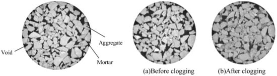 - Meng, A.; Xing, C.; Tan, Y.; Li, G.; Li, J.; Lv, H. Investigation on the distributing behaviors of clogging particles in permeable asphalt mixtures from the microstructure perspective. Constr. Build. Mater. 2020, 263, 120531. [Google Scholar] [CrossRef]
