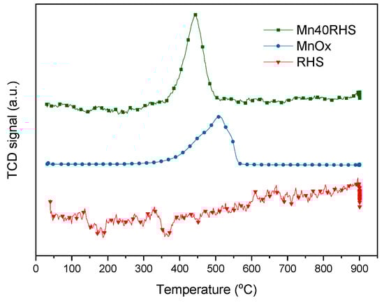 H2-TPR for bulk MnOx, Mn40RHS, and RHS.