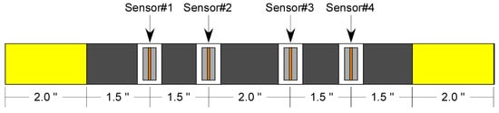 Schematic showing sensor position for carbon/epoxy cross-ply tensile coupons.