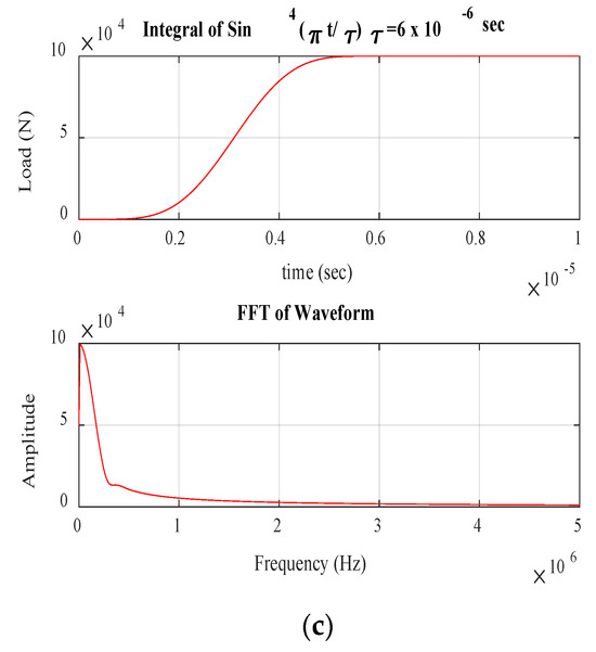 Figure 6 shows the various source time functions used as impulse loading to simulate failure modes under consideration. The duration of these source time functions is approximated based on the duration of AE source events considered. Fiber break events, having a short duration, were modeled with an integral of sine to power four with a very short rise time of 0.5 µsec, exceeding the frequency content of 3 MHz. Similarly, matrix crack and delamination were simulated using a longer-duration source time function with frequencies extending to 650 kHz and 250 kHz, respectively.