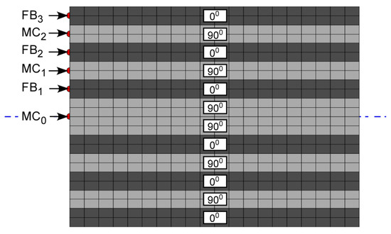Figure 9 shows the percentage change in maximum axial stress when the number of elements per lamina gradually increases for both symmetric and anti-symmetric modes for the fiber break model, which requires the most spatial resolution due to the high-frequency content. To ensure optimal run time and number of elements, each model is meshed using six elements per lamina as the ideal percentage change of less than 5% is observed for models with six elements per ply for both symmetric and anti-symmetric mode.
