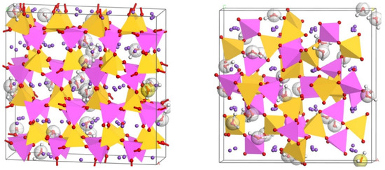 In summary, the basic structural units of geopolymers are close to various types of aluminosilicate six-membered ring zeolites, and often form products similar to sodalite. Similarly, scholars often use sodium hydroxide to treat silicon–aluminum powders to obtain the above-mentioned zeolites. Although synthetic zeolites require a higher reaction temperature, the reaction mechanisms in these two cases are similar. Jae et al. [32] obtained hydroxysodalite by NaOH-activated fly ash at 90 °C and atmospheric pressure, and considered that hydroxysodalite is the best candidate to represent the intermediate structure of the synthetic zeolite process. The role of hydroxysodalite in geopolymer research is similar to the role of 14 Å Tobermorite and Perlite in C-S-H [33]. The zeolite phases detected in this paper are close to the arrangement of sodalite, all of which are hexagonal silicon aluminum ring structure of ABC-6 family, which is in line with the formation mechanism of geopolymer. The difference is that the size of n(Si)/n(Al) is different. Therefore, in order to realize the construction of a geopolymer model, the crystal model of the above minerals is selected as the basis, and the N-A-S-H model is built by referring to the method of building a C-S-H model based on 14 Å Tobermorite and Perlite. In addition, nepheline is often reported in geopolymers with n(Si)/n(Al) = 1 [34], which is also built in this paper.