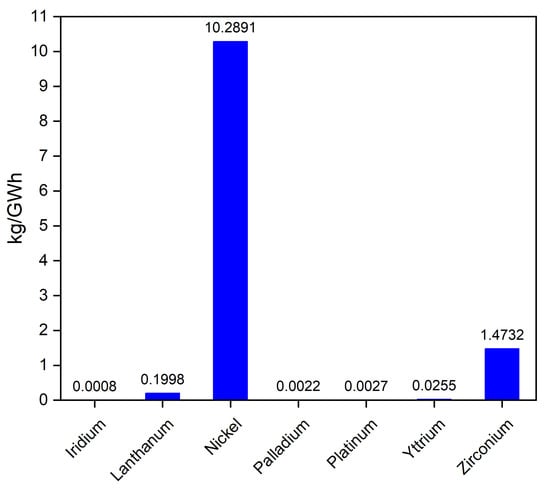 The graph in Figure 11 reflects the distribution of mineral demands for fuel cells and electrolyzers today, with nickel leading by a significant margin [43].