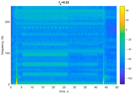 Spectrogram registered at a feed of 0.02 mm/tooth.