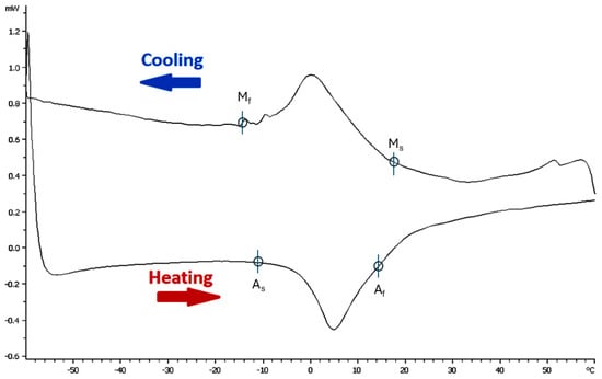A DSC curve of untreated NiTi. Adapted with permission from Chien et al., 2023, under the Creative Commons Attribution (CC BY) license [].