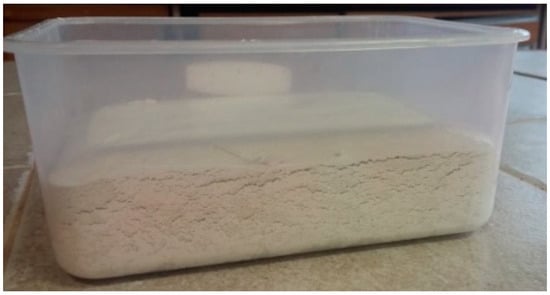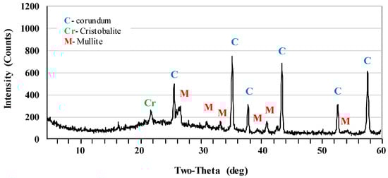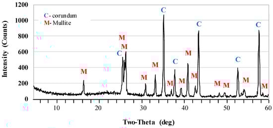 Kaolin is a relatively prevalent soft, often chalk-like sedimentary rock with an earthy smell. Kaolin is low-plasticity clay, and the melting point of pure kaolin is around 1770 °C, while impurities lower its melting point [2,5]. The main mineral of these clays is kaolinite. The theoretical formula of kaolinite is Al2O3·2SiO2·2H2O. Kaolinite is formed in the kaolinisation process from feldspar (potassium feldspar), granite or aluminium silicates over a long period of time. It is known from the literature that the percentage of the main oxides of kaolin from different deposits can vary up to 10 wt%. Thus, for example, the content of SiO2 and Al2O3 is 53.7 wt% and 41.8 wt% in French kaolin, 53.1 wt% and 44.4 wt% in Algerian kaolin, 62.1 w t% and 36.8 wt% in Malayan kaolin, and 52.8 wt% and 44.7 wt% in American kaolin, respectively [1,6,7]. Kaolin also contains other oxides and minerals, the amount of which is variable, for example, 0.05 wt% of Fe2O3 and CaO, 0.04 wt% of MgO, Na2O and TiO2, and 0.03 wt% of K2O. Usually, kaolin additionally contains quartz and mica, and less often, feldspar, illite, montmorillonite, hematite, bauxite, zircon, rutile, kyanite, sillimanite and others [1,5,7].