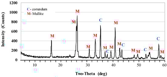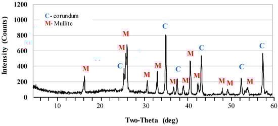 The production of porous mullite and mullite-alumina ceramics remains topical and important nowadays due to their chemical resistance, thermal stability, mechanical strength and long durability [36]. The variation in pore size distribution, interconnectivity, permeability and microstructure of the porous mullite and mullite-alumina ceramic allow for different applications of their use [37,38]. Different porous mullite composite ceramic membranes and filters are used to interact uniquely with oil droplets in oil refining [39] and oil–water filtration [40,41], industrial wastewater treatment [40,42,43], arsenic removal from borehole water [44], mullite ceramic composite membranes for highly efficient CO2/N2 separation and stability at high temperatures [45], mullite fibre-based porous ceramic for catalytic carriers and ozonation process [46], and for heat insulation and sound absorption, for example, self-reinforcing porous mullite ceramics [47] or mullite fibrous porous ceramic [48].