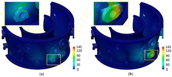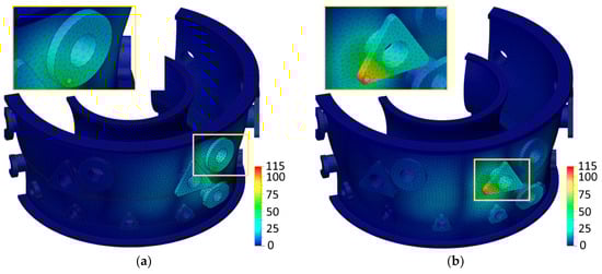 The Fusion360 v2.0.20981 software and Autodesk Nastran 19.0.0.1 solver (Autodesk, Inc., San Rafael, CA, USA) were used to design the engine case’s body geometry and were calculated using FEM.