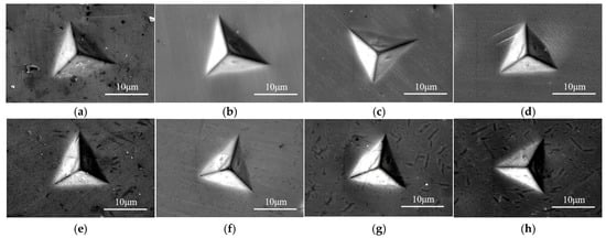 - Zong, Z.; Lou, J.; Adewoye, O.O.; Elmustafa, A.A.; Hammad, F.; Soboyejo, W.O. Indentation Size Effects in the Nano- and Micro-Hardness of Fcc Single Crystal Metals. Mater. Sci. Eng. A 2006, 434, 178–187. [Google Scholar] [CrossRef]