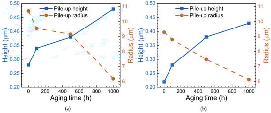 - Aging treatment and volume fraction of particles significantly affect the nano-indentation morphology. As the aging time increases, the indentation-affected area decreases, signifying reduced plastic deformation properties and more uniform microscopic deformation. Additionally, higher volume fractions or extended aging times result in lower ratios and greater rebound during unloading, corresponding to increased nano-hardness.