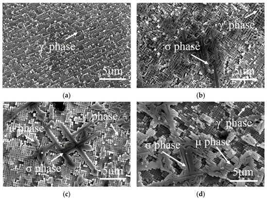 - Qin, X.Z.; Guo, J.T.; Yuan, C.; Chen, C.L.; Ye, H.Q. Effects of Long-Term Thermal Exposure on the Microstructure and Properties of a Cast Ni-Base Superalloy. Metall. Mater. Trans. A 2007, 38, 3014–3022. [Google Scholar] [CrossRef]