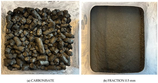 Carbonisate (a) after pyrolysis; (b) after crushing and screening to a 0.5 mm fraction.