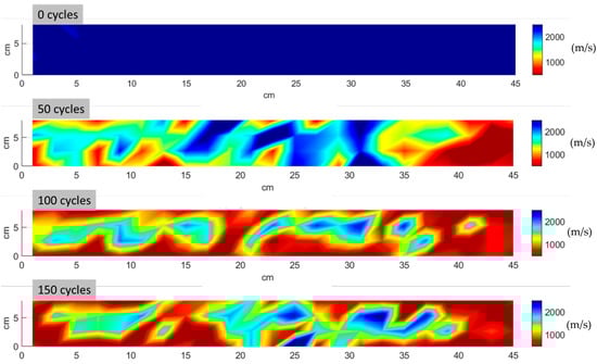 Distribution of UPV for 0, 50, 100, and 150 freeze–thaw cycles.
