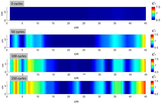Distribution of ε′r for 0, 50, 100, and 150 freeze–thaw cycles.