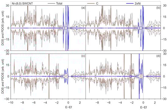 - Demir, S.; Fellah, M.F. Carbon Nanotubes Doped with Ni, Pd and Pt: A Density Functional Theory Study of Adsorption and Sensing NO. Surf. Sci. 2020, 701, 121689. [Google Scholar] [CrossRef]