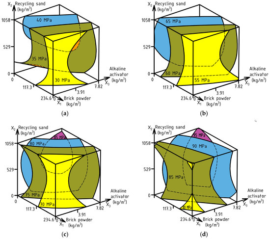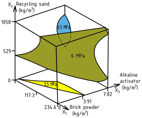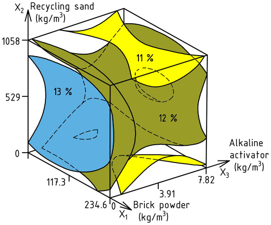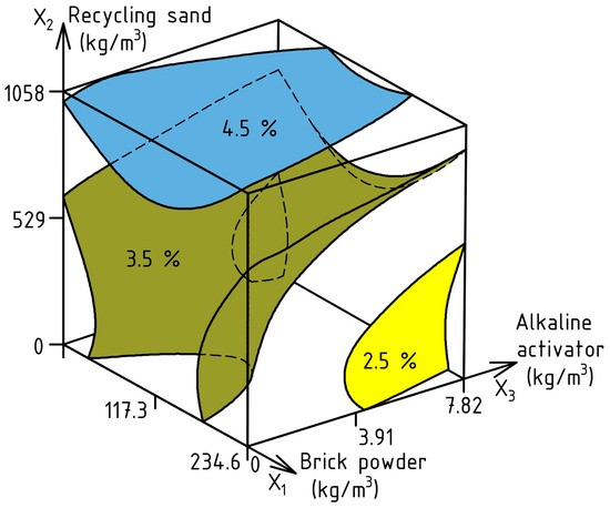 | No. of Mixture | X1, BP | X2, RS | X3, AA | Cement, kg/m3 | QS, kg/m3 | Filler, kg/m3 | SP, kg/m3 | BP (X1), kg/m3 | RS (X2), kg/m3 | AA (X3), kg/m3 | Water, kg/m3 | W/C |