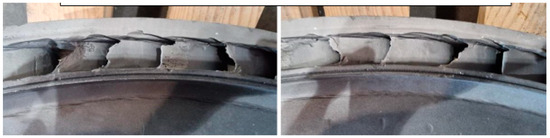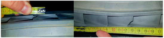 During turbine shutdown, the process reverses—the components cool down rapidly, generating shrinkage stresses that lead to similar fatigue phenomena and may cause microcracks. Cyclic heating and cooling cause the material to undergo creep, and the microstructure of the elements changes under continuous loading. In the analyzed segments, it was observed that thermal cycles in conditions of intensive use contribute to uneven temperature and pressure distributions, causing damage to the blades and nozzle segments [13,14].
