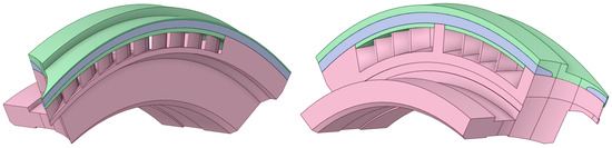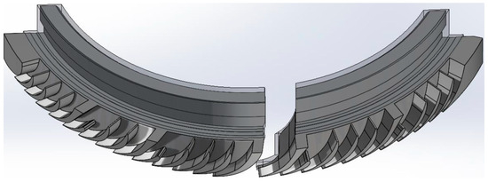 Consequently, to prevent such failures and ensure the greater durability of turbine components, it is necessary to conduct detailed strength analyses that include Fluid–Structure Interaction (FSI) and Computational Fluid Dynamics (CFDs) simulations [15,16]. These analyses allow for an understanding of the failure mechanisms and the optimization of the nozzle box design to reduce the risk of damage. The effective implementation of such optimizations not only increases turbine reliability but also reduces the downtime and repair costs, which is crucial for the efficiency of an entire industrial facility. In earlier articles [15,16], the authors did not have access to actual data obtained from the real geometry of the object, which limited their ability to conduct a precise analysis and validate the results. In this article, the authors have a real object at their disposal, enabling a detailed analysis based on actual data, thereby enhancing the reliability and practical applicability of the findings.