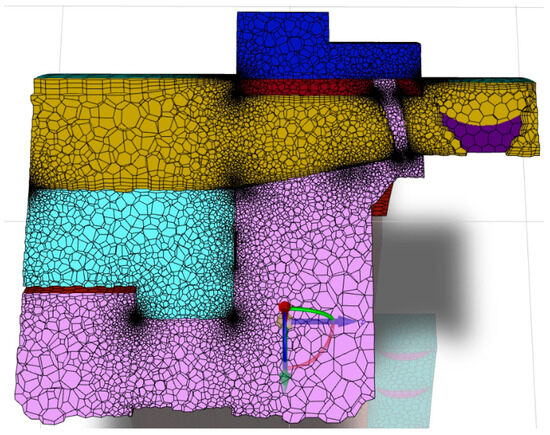 The k-ω SST (Shear Stress Transport) model has been successfully applied and validated in numerous studies addressing similar issues, particularly in the context of thermal and flow coupling, as demonstrated in works [33,34,35,36,37,38]. This is the main reason why this model was chosen.