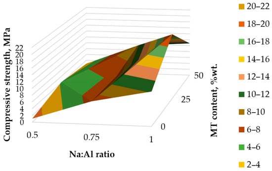 Influence of Na:Al ratio and MT content on compressive strength at 28 days.