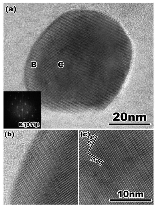 (a) A high-resolution transmission electron micrograph of yttria doped zirconia particle. The FFT pattern in (a) indicates that the particle is tetragonal single phase. Enlarged lattice image of (b) the surface and (c) the internal region of the particle indicated by B and C in (a), respectively. Reprinted from Ref. [51] with permission from John Wiley and Sons.