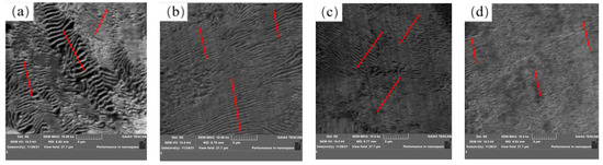 U75V steel pearlite lamellar spacing: (a) S1, (b) S2, (c) S4 and (d) S5.