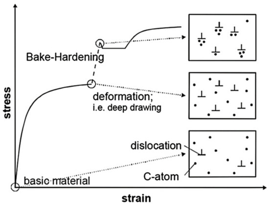 The influence of bake hardening on stress (reproduced with permission from Reference [78]; copyright © 2024 Elsevier Ltd. All rights reserved).