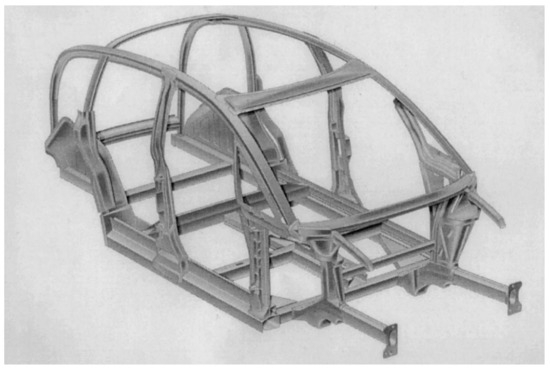 Currently, aluminium is very important in the construction of car bodies. A body made of aluminium alloys is much lighter than one made of steel. The density of aluminium and its alloys is about 65% lower than that of steel. Reducing the weight of a mid-range vehicle can be as much as 300–400 kg without compromising its performance or safety level. It is assumed that reducing the vehicle weight by 100 kg allows for fuel savings of approximately 0.6 dm3 per 100 km. When the vehicle mass is reduced by 100 kg, the fuel consumption is reduced by about 0.4 dm3/100 km, and the CO2 emission decreases by 7.5 to 12.5 g/km [11]. Aluminium alloys are corrosion resistant and have high mechanical strength. Aluminium alloys with copper, magnesium, silicon, nickel, and manganese are most often used in body structural elements (doors, engine covers, roof elements, boot lids, etc.). Al–Mg and Al–Mg–Mn alloys are characterised by average mechanical strength, but they are highly resistant to corrosion. Al–Mg–Si series alloys have average mechanical strength but high corrosion resistance and good plasticity. Al–Zn–Mg and Al–Zn–Mg–Cu alloys have strengths similar to those of steel body sheets. The first car to use car body panels made of aluminium was the Bugatti 10. In the post-war years, the aluminium-bodied ‘1953 Porsche 356 1500 [12] was created. Nowadays, aluminium alloy sheets are used in the Audi A8, Land Rover Defender, and BMW 5 series. In 2015, Ford introduced the aluminium-bodied F-150. Aluminium and its alloys are eagerly used in the production of trailers and semi-trailers, delivery trucks, and motor tracks. Aluminium alloys are also a material for producing composite car bodies [13,14]. Basic aluminium-based laminates include glass-reinforced aluminium laminates (GLAREs), aramid-reinforced aluminium laminates (ARALLs), carbon fibre-reinforced aluminium laminates (CARALLs), kenaf fibre-reinforced aluminium alloy laminates (CAKRALLs), and flax fibre-reinforced aluminium alloy laminates (CAFRALLs) [15].