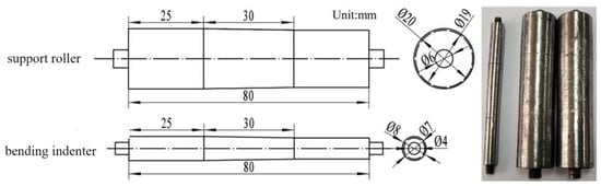 Dimensions and physical objects of the support roller and bending indenter.