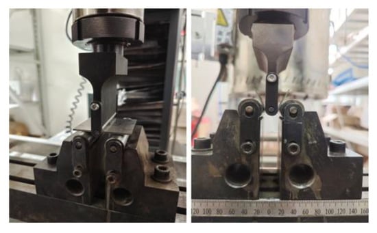 CMT5105-SANC with a span of 34 mm was selected as the experimental equipment for three-point bending. When Al-TRB bending parts are placed, the bending indenter should be placed across the thin zone, transition zone, and thick zone. The thin zone was placed on the larger side of the bending indenter roll diameter, the transition zone of Al-TRB was aligned with the transition zone of the bending indenter, and the thick zone was placed on the smaller side of the bending indenter roll diameter. The pressing speed of bending indenter was 2 mm/min, and the experimental method is shown in Figure 3.