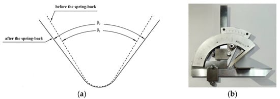 Representation and measurement method of angle: (a) representation of spring-back angle; (b) measurement method for angle.