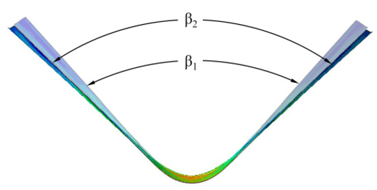 Cross-sectional shape of Al-TRB before and after spring-back (β1—before spring-back; β2—after spring-back).