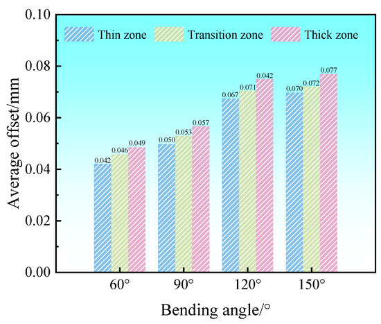 Average offset in each thickness zone of Al-TRB for different bending angles.