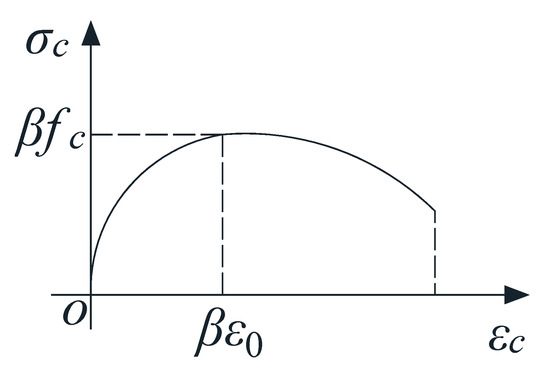 According to previous studies [38], the stress–strain relationship in the principal compressive stress direction of softened concrete is as follows: