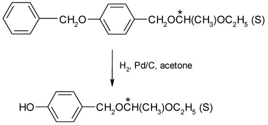 - Urbańska, M.; Szala, M. Synthesis, Mesomorphic Properties and Application of (R,S)-1-Methylpentyl 4’-Hydroxybiphenyl-4-carboxylate Derivatives. Crystals 2022, 12, 1710. [Google Scholar] [CrossRef]