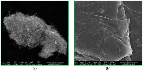 SEM images of (a) MWCNT and (b) GNP.